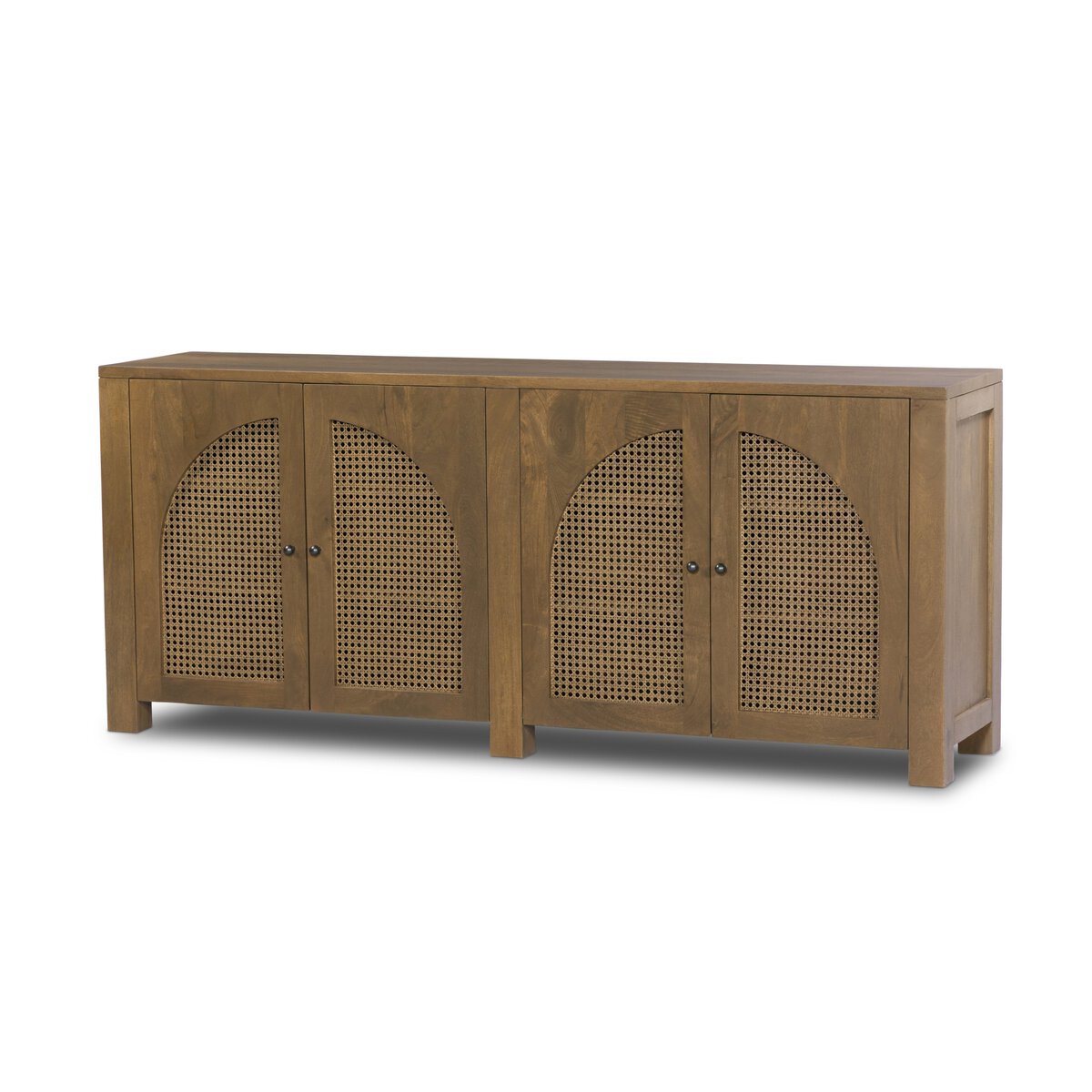 Overall Dimensions 78.00"w x 18.00"d x 33.00"hItem Number 109085-006Colors Natural Mango, Natural Circle CaneMaterials Solid Mango, CaneWeight 214.29 lbVolume 40.05 cu ftClearance from Floor 1 3.00"Door Height 1 29.00"Door Thickness 1 1.00"Door Width 1 17.25"Fixed Shelf Depth 1 15.87"Fixed Shelf Height 1 0.75"Fixed Shelf Width 1 37.63"Interior Section Depth 1 16.33"Interior Section Height 1 8.75"Interior Section Width 1 37.63"Cord Management YesDoor Closure Catch Type MagneticDoor Qty 4.00Door Type HingedDrawer Glide Type NoneDrawer Stop Material NoneFixed Shelf Qty 4.00Fixed Shelves YesFrame Construction Joinery Mortise and TenonFunctionality DoorsFunctionality ShelvesHinge Type Cabinetry-soft closeInterior Section Quantity 6.00Protective Feet Leg LevelersRecommended Shelf Capacity (kg) 18.14Recommended Shelf Capacity (lbs) 40.00Suite TildaWeight Capacity 200 lb