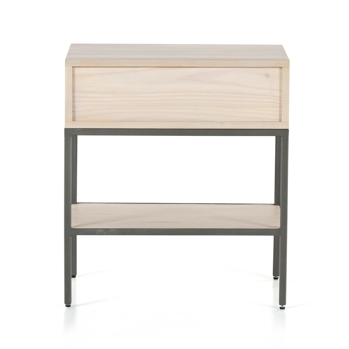 Overall Dimensions 24.00"w x 17.00"d x 27.00"hItem Number 108459-005Colors Dove Poplar, Toffee LeatherMaterials Solid Poplar, Top Grain LeatherWeight 40.79 lbVolume 11.23 cu ftClearance from Floor 1 7.87"Drawer Depth 1 14.29"Drawer Height 1 4.53"Drawer Width 1 20.98"Fixed Shelf Depth 1 15.43"Fixed Shelf Height 1 0.75"Fixed Shelf Width 1 22.52"Interior Section Depth 1 15.43"Interior Section Height 1 10.12"Interior Section Width 1 22.52"Door Type No DoorsDrawer Glide Color WoodDrawer Glide Type Sidemount WoodDrawer Joinery English DovetailDrawer Quantity 1.00Drawer Stop Anti Tip Rail YesDrawer Stop Material PlasticFixed Shelf Qty 1.00Fixed Shelves YesFrame Construction Joinery English DovetailFrame Construction Joinery Pocket Joint with ScrewsFunctionality DrawersFunctionality ShelvesInterior Section Quantity 1.00Protective Feet Leg LevelersShape Type RectangleSuite TreyWeight Capacity 100 lb