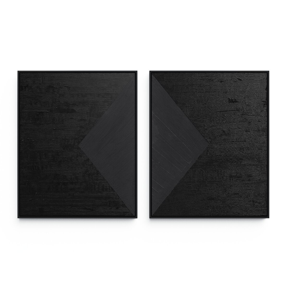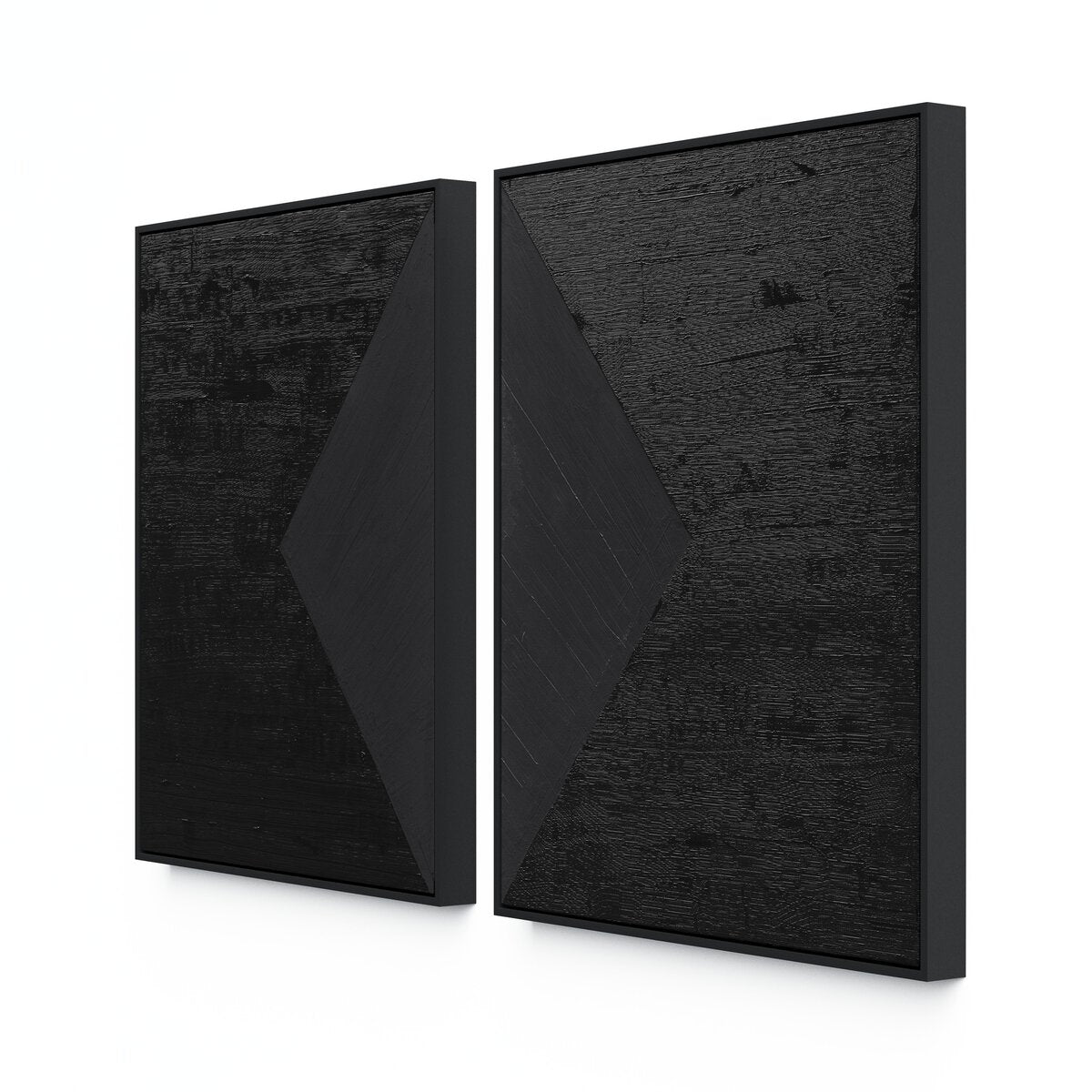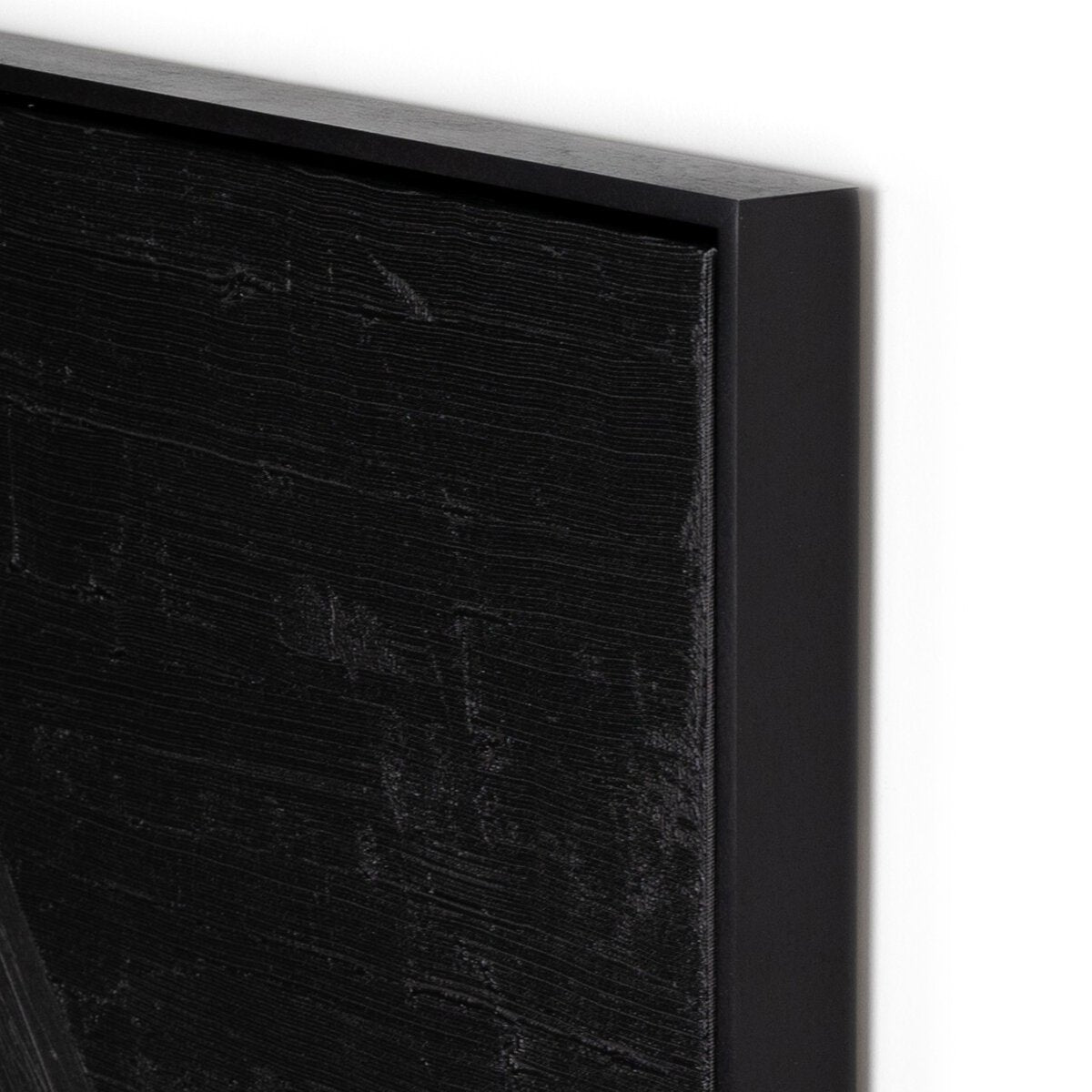 Overall Dimensions 52.00"w x 2.00"d x 32.00"hItem Number 252795-001Colors Black Maple Floater, Matte CanvasMaterials American Maple, Matte CanvasWeight 40.00 lbVolume 5.30 cu ftArtist The Holly CollectiveMain Color BlackOrientation VerticalPresentation Style Canvas Floater FramedSize MediumSubject AbstractSuite Triangle