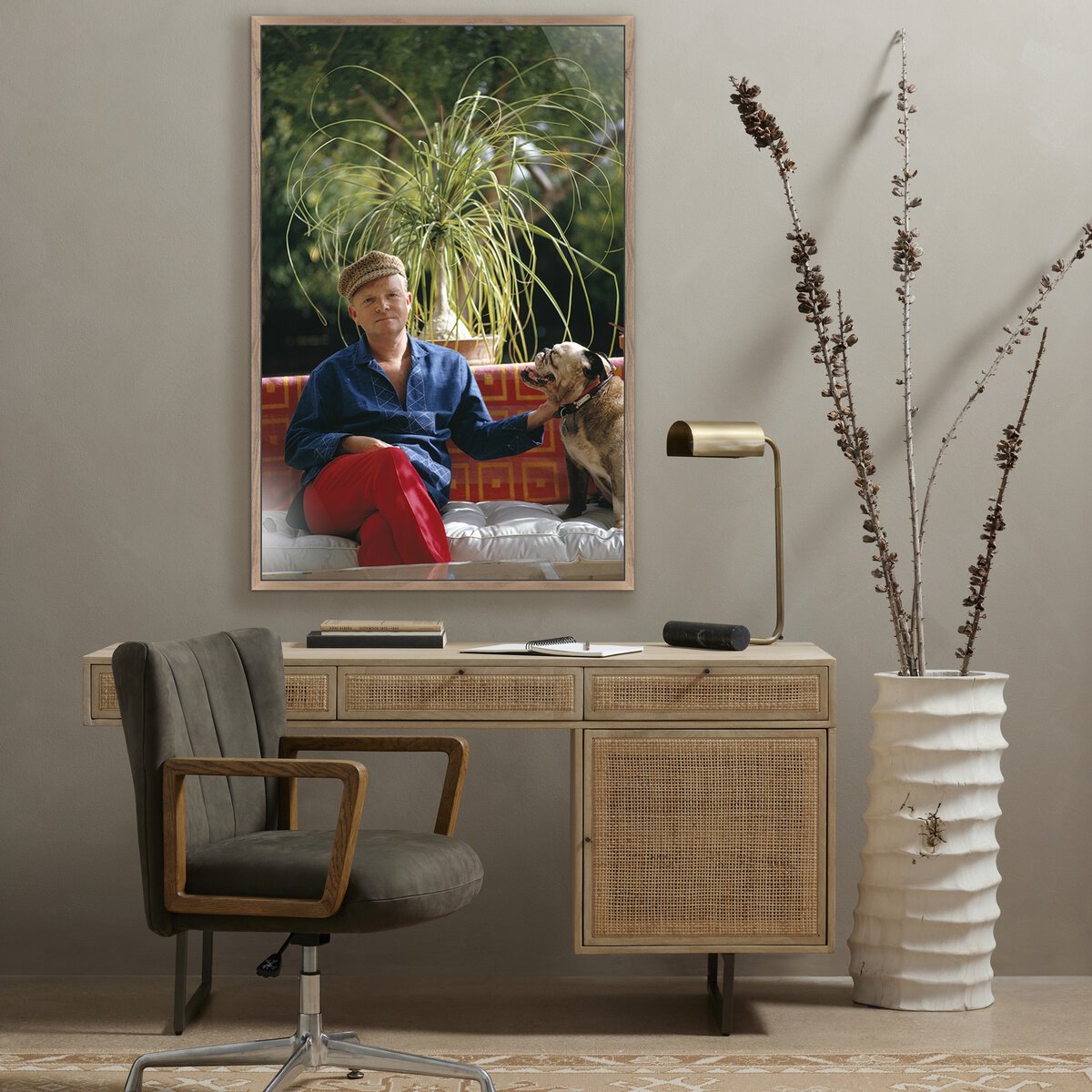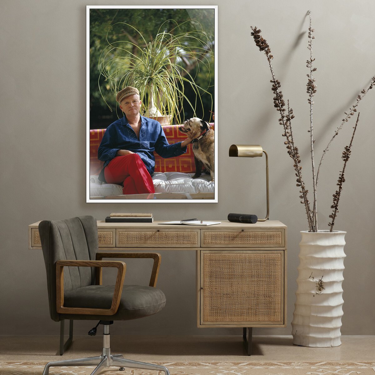 Overall Dimensions 24.00"w x 2.00"d x 36.00"hItem Number 247504-002Colors White Maple Floater, Gloss White MetalMaterials American Maple, Gloss White ChromaluxeWeight 20.00 lbVolume 2.75 cu ftArtist Slim AaronsMain Color MixedOrientation VerticalPresentation Style Framed MetalSize MediumSubject CelebritySuite Truman Capote