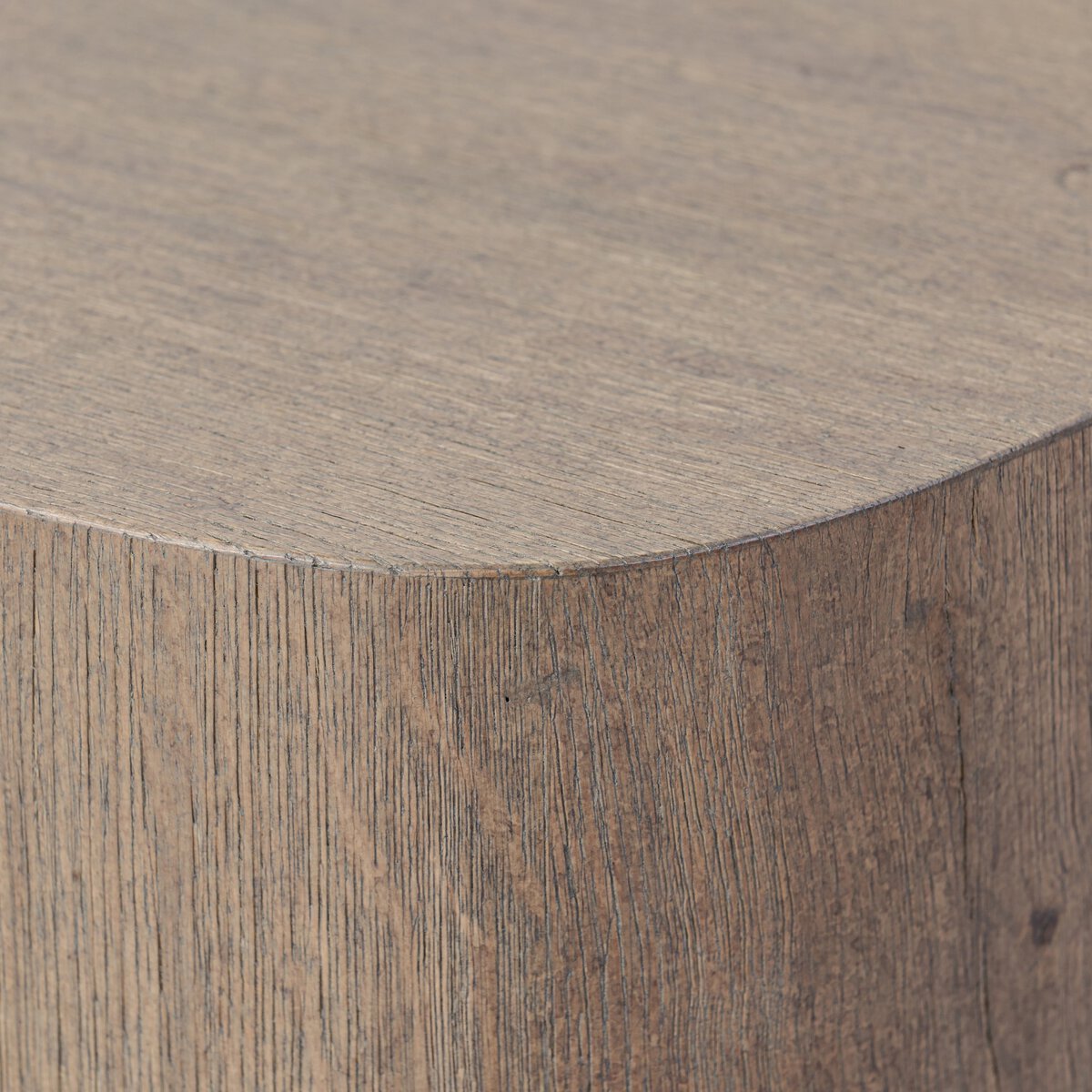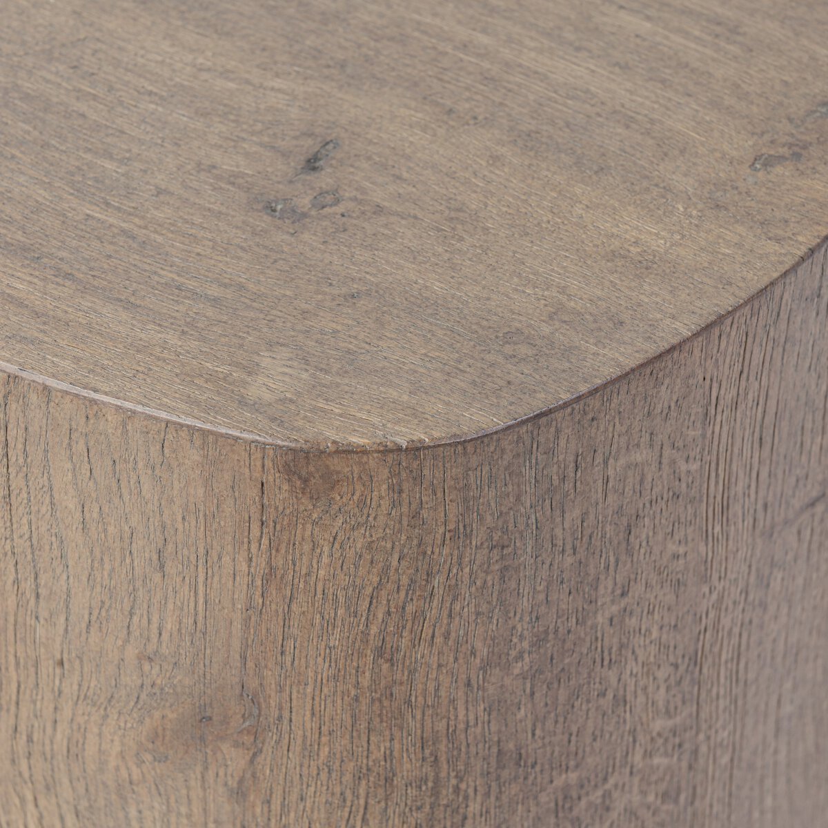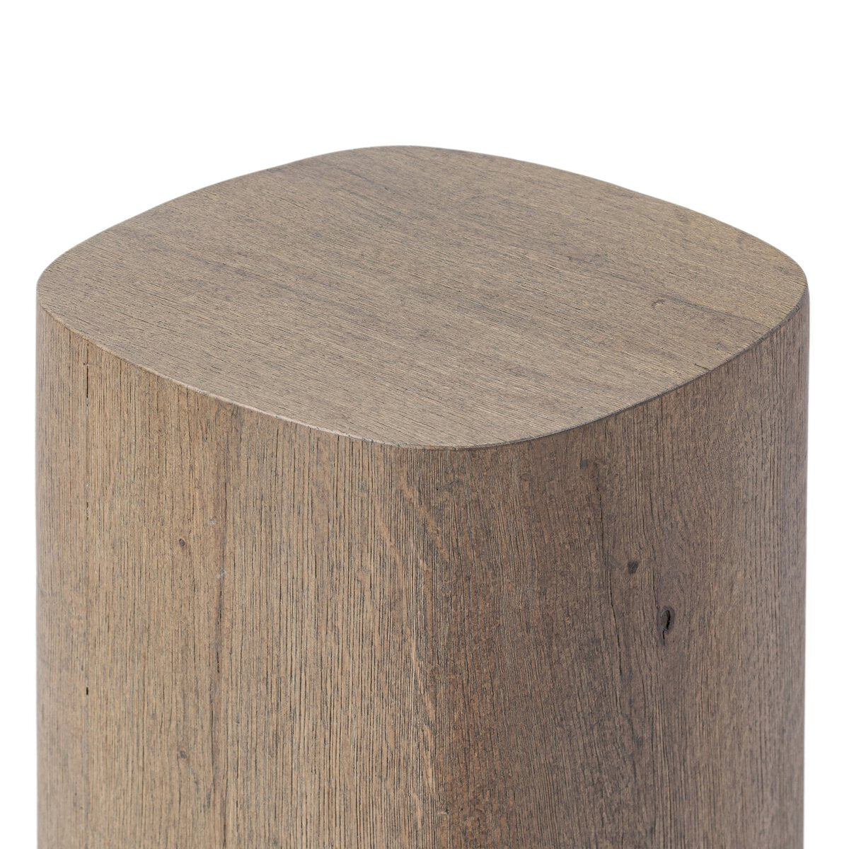 A pedestal for displaying all your favorite things, taking on a squircle shape — the perfect mix of a circle and square — with soft rolling edges, rounded into clean corners. Wire-brushed finish in a brown oak veneer with knots and cracks throughout for added character.