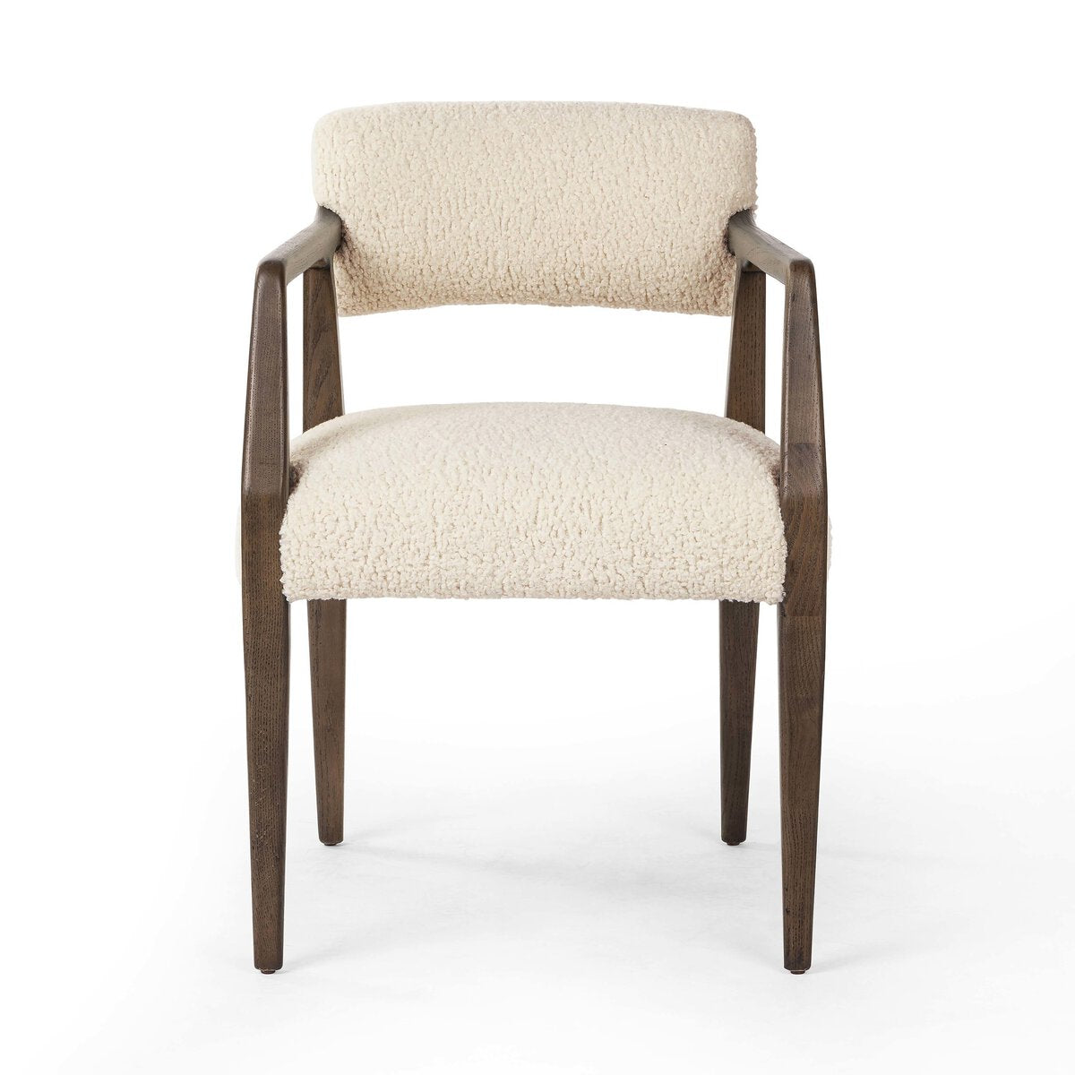 Overall Dimensions 22.00"w x 24.00"d x 30.75"hItem Number 236324-001Colors Sheepskin Natural, Burnt OakMaterials 100% Polyester, Solid OakWeight 17.20 lbVolume 10.63 cu ftArm Height from Floor 26.77"Arm Height from Seat 6.50"Arm Length 17.99"Arm Width 1.18"Clearance from Floor 1 14.76"Distance between Legs (Front to Back) 1 19.33"Distance between Legs (Side to Side) 1 19.06"Seat Back Height 10.51"Seat Depth 1 19.57"Seat Height 1 20.28"Seat Width (Back) 19.69"Seat Width (Front) 18.11"Chair Arm Option With ArmCleaning Code
