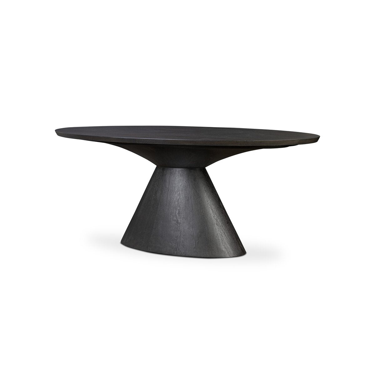 Overall Dimensions 72.00"w x 42.00"d x 30.00"hItem Number 250471-002Colors Smoked Black Veneer, Smoked Black ResinMaterials Thick Oak Veneer, Composite Resin Mixture, Solid OakWeight 229.28 lbVolume 58.30 cu ftClearance from Floor 1 28.74"Leg/Base Depth 1 17.99"Leg/Base Height 1 28.54"Leg/Base Width 1 36.02"Opening for Seating Height 28.74"Overhang Width 1 17.99"Tabletop Thickness 1.26"Drawer Glide Type NoneDrawer Stop Material NoneFrame Construction Joinery Corner-block/CleatFrame Construction Joinery Edge Banded VeneerFunctionality NoneSeating Capacity 6.00Shape Type OvalSuite UmaTable Type PedestalWeight Capacity 200 lb