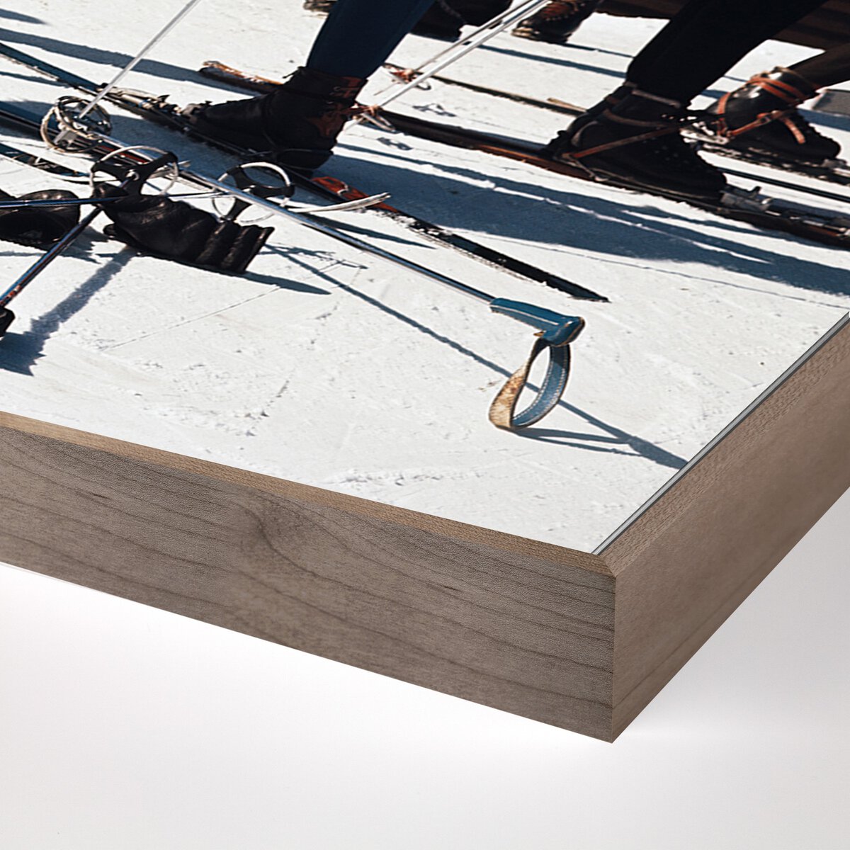 Overall Dimensions 24.00"w x 2.00"d x 24.00"hItem Number 250755-003Colors White Maple Floater, Gloss White MetalMaterials American Maple, Gloss White ChromaluxeWeight 15.00 lbVolume 1.94 cu ftArtist Slim AaronsMain Color MixedOrientation SquarePresentation Style Framed MetalSize SmallSubject Portraits & FiguresSuite Verbier Skiers