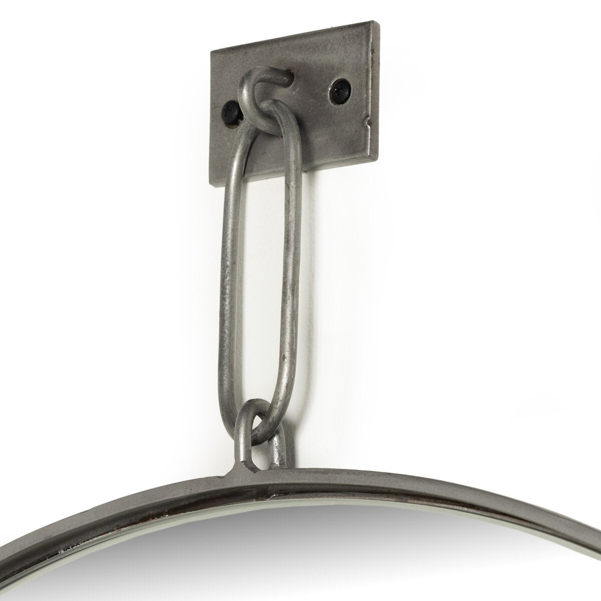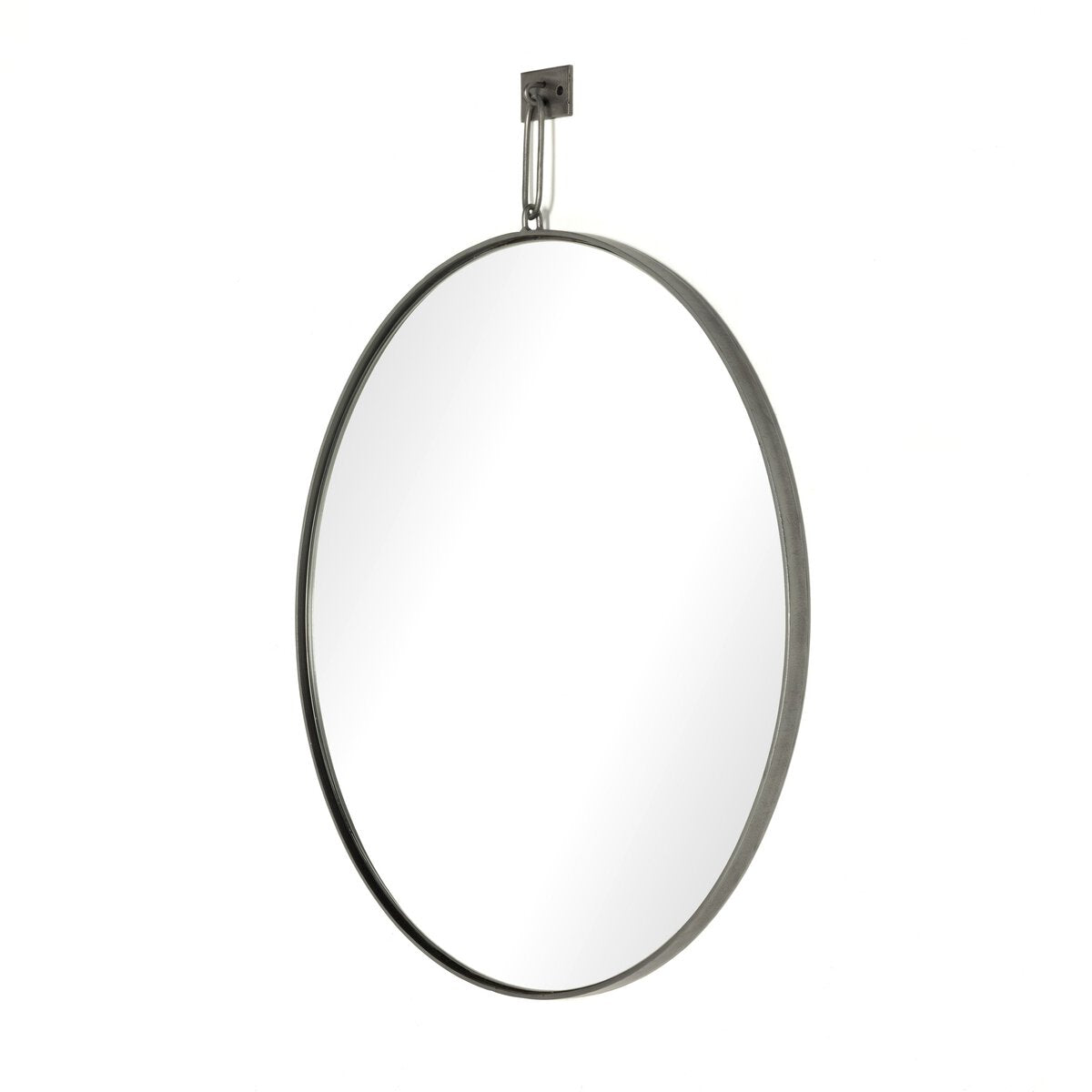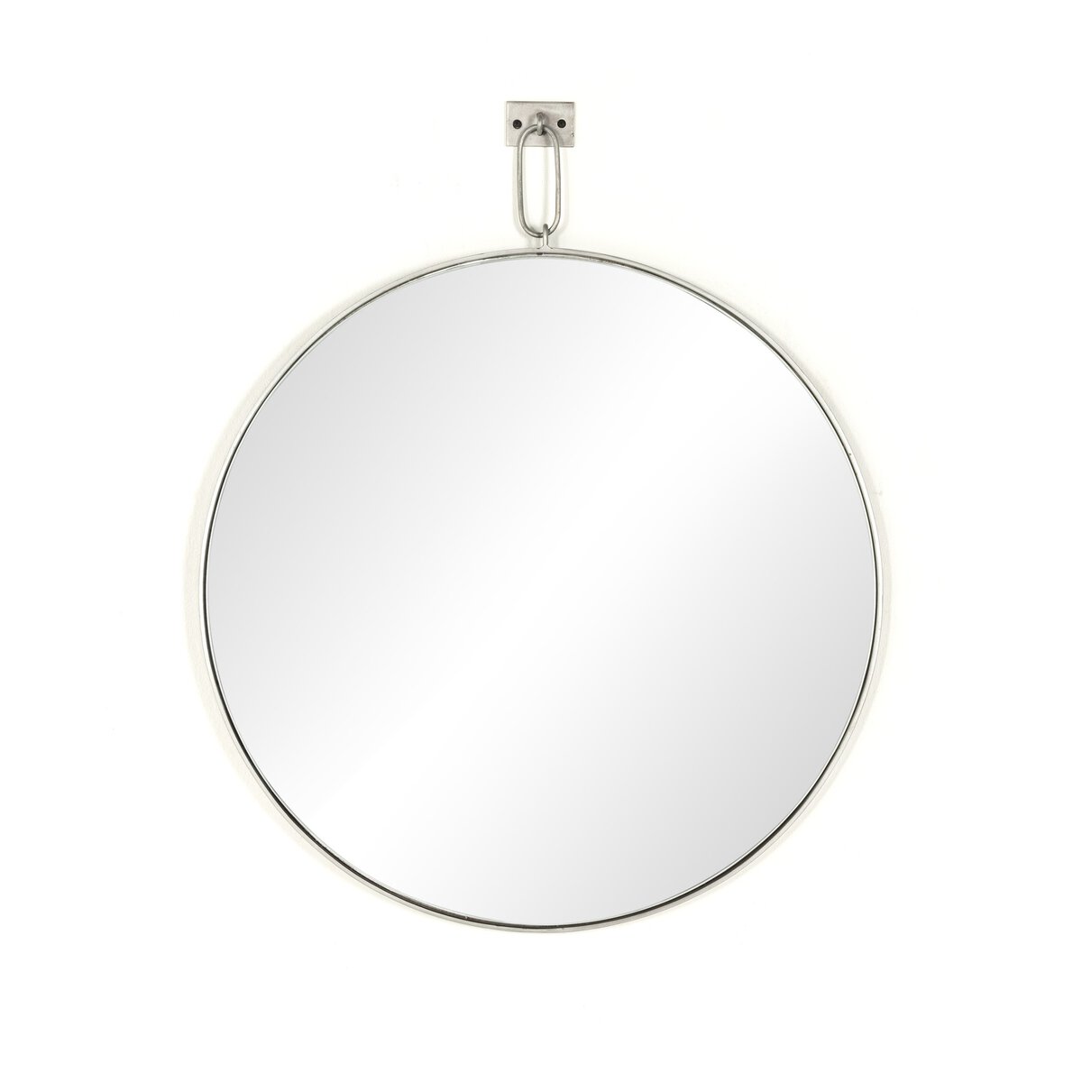 Overall Dimensions 30.00"w x 1.00"d x 36.50"hItem Number 101580-005Colors Antique SilverMaterials Iron, MirrorWeight 28.90 lbVolume 3.88 cu ftReflective Area, Height 29.50"Reflective Area, Width 29.50"Bathroom Safe YesHanging Direction VerticalHanging Mechanism Security CleatShape Type RoundSuite Vina