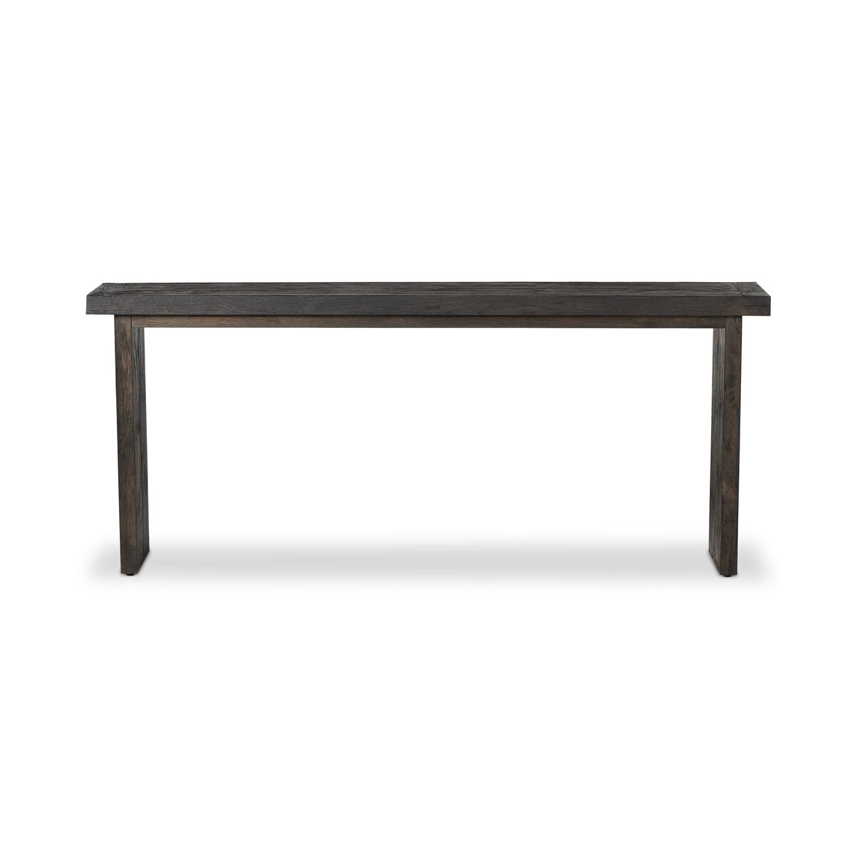 Overall Dimensions 78.00"w x 18.00"d x 32.25"hItem Number 235177-002Colors Worn Oak VeneerMaterials Oak Veneer, Solid OakWeight 97.88 lbVolume 11.05 cu ftClearance from Floor 1 28.50"Distance between Legs (Side to Side) 1 68.00"Leg/Base Depth 1 16.00"Leg/Base Height 1 30.00"Leg/Base Width 1 2.00"Overhang Width 1 3.00"Tabletop Thickness 2.25"Door Type No DoorsDrawer Glide Type NoneDrawer Stop Material NoneFunctionality NoneHas Leveler YesProtective Feet Leg LevelersShape Type RectangleSuite WarbyWeight Capacity 200 lb