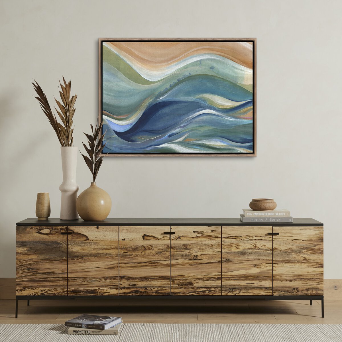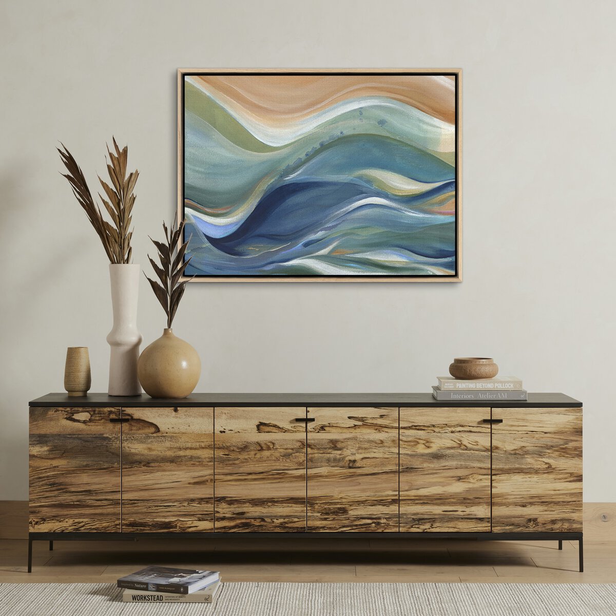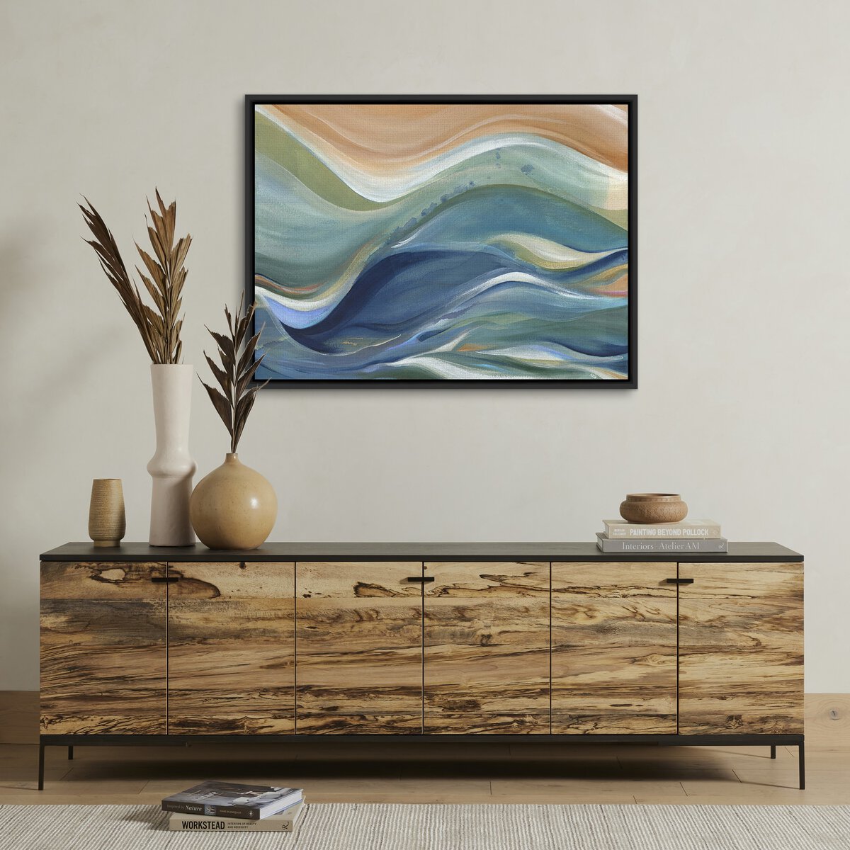 Overall Dimensions 24.00"w x 2.00"d x 18.00"hItem Number 246403-002Colors White Maple Floater, Matte CanvasMaterials American Maple, Matte CanvasWeight 15.00 lbVolume 1.55 cu ftArtist Ahn Hee StrainMain Color BlueOrientation HorizontalPresentation Style Canvas Floater FramedSize SmallSubject AbstractSuite Wash Over Me