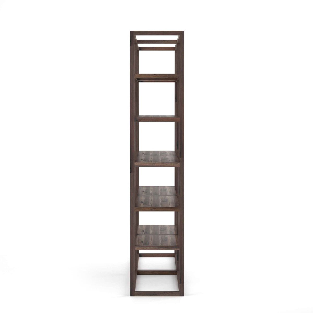 Overall Dimensions 80.00"w x 17.00"d x 84.00"hItem Number 232215-001Colors Harvest BrownMaterials Solid AcaciaWeight 130.08 lbVolume 49.23 cu ftCan Be Floated YesDoor Type No DoorsDrawer Glide Type NoneDrawer Stop Material NoneFixed Shelves YesFrame Construction Joinery Bore and DowelFrame Construction Joinery Butt JointFunctionality ShelvesHas Leveler YesProtective Feet Leg LevelersShape Type DoubleSuite Waylon