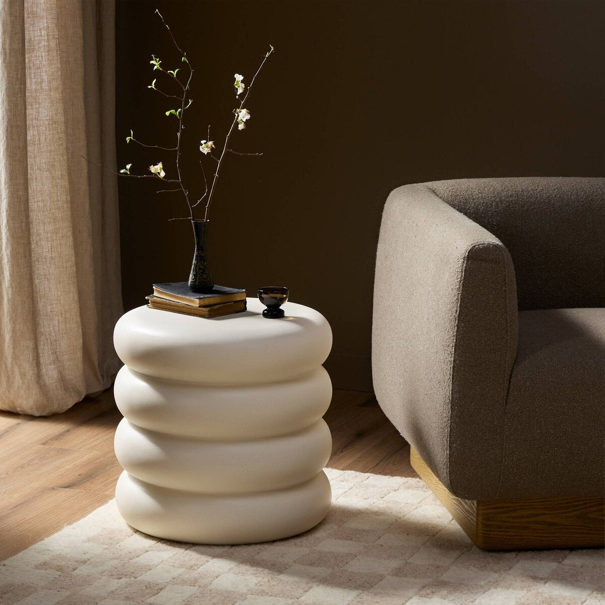 Overall Dimensions 18.00"w x 18.00"d x 18.00"hItem Number 226644-001Colors Ivory ClayMaterials Solid ConcreteWeight 60.63 lbVolume 7.24 cu ftLeg/Base Depth 1 17.99"Leg/Base Height 1 17.17"Leg/Base Width 1 17.99"Tabletop Thickness 0.79"Weight Capacity 100 lb