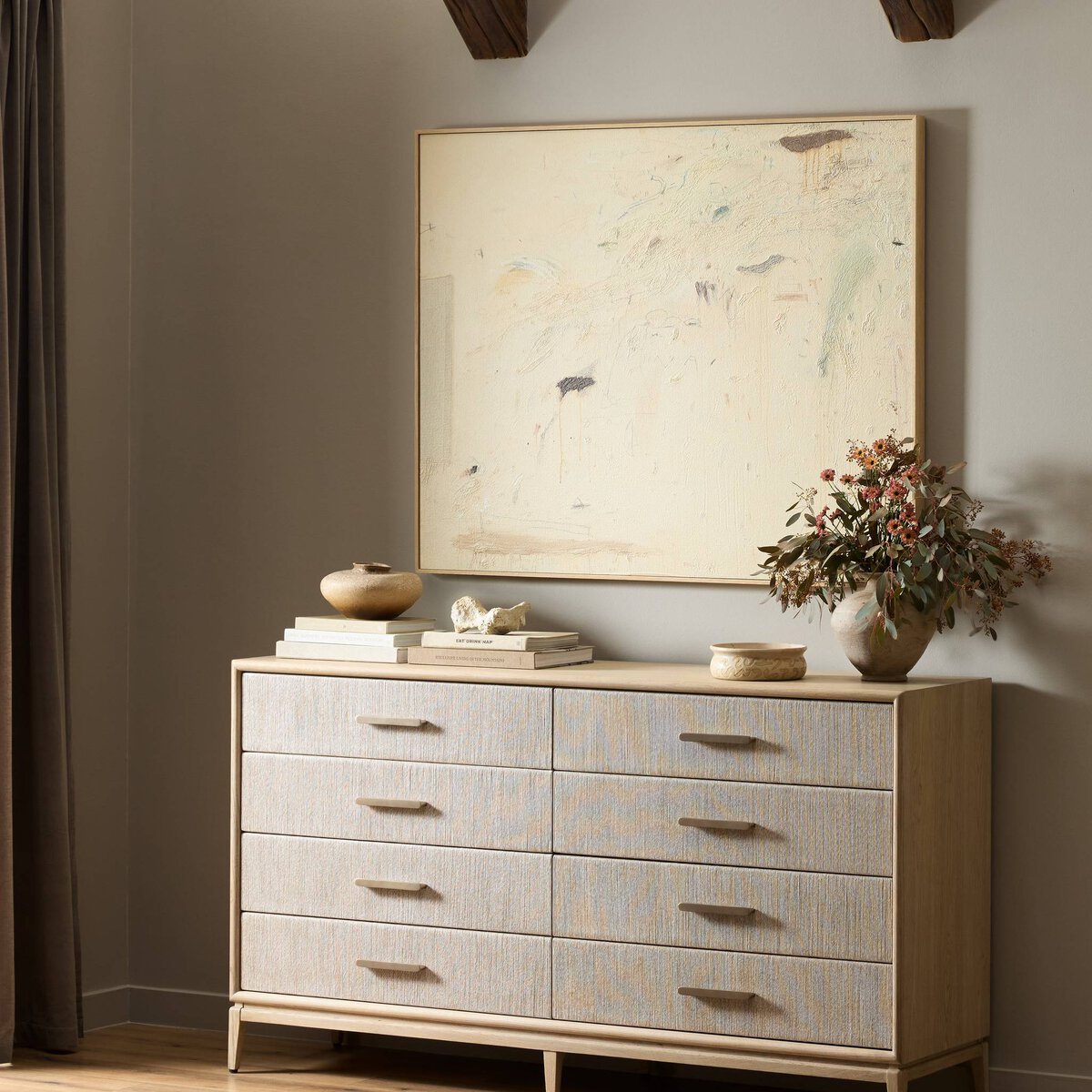 Overall Dimensions 32.00"w x 2.00"d x 25.50"hItem Number 250881-001Colors Vertical Grain White Oak Floater, White PalboardMaterials Vertical Grain White Oak Floater, Recycled PVCWeight 20.00 lbVolume 2.61 cu ftArtist Tyler GuinnMain Color NeutralOrientation HorizontalPresentation Style Framed PanelSize MediumSubject AbstractSuite What We Learned On The Mountain