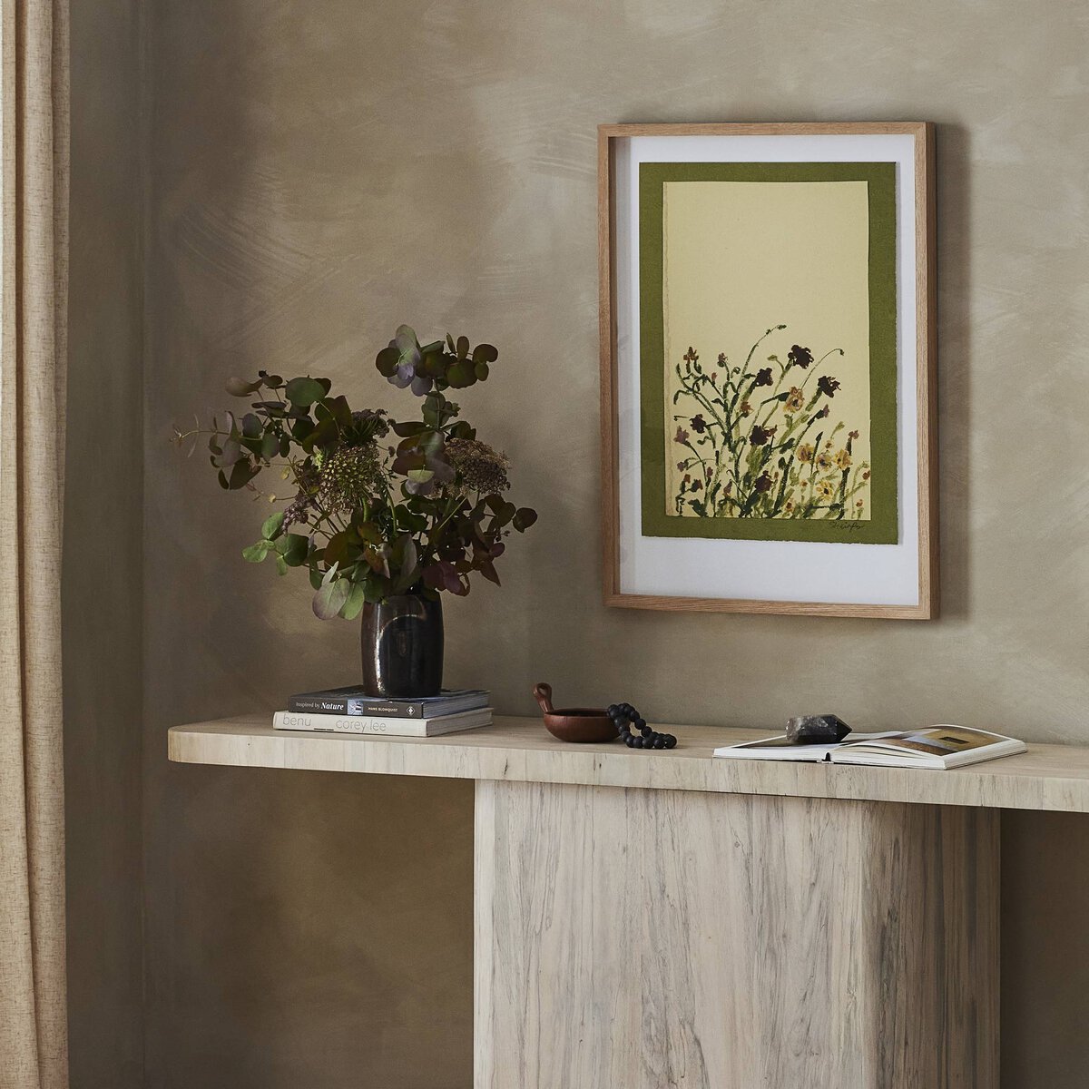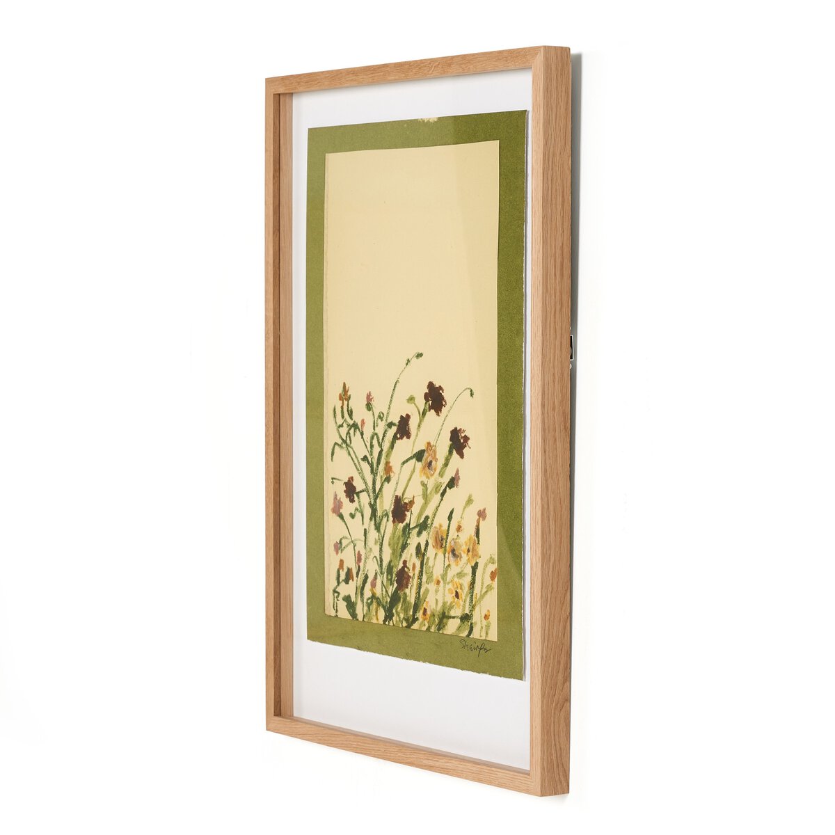Overall Dimensions 12.00"w x 1.50"d x 18.00"hItem Number 248711-001Colors Vertical Grain 1.5 White Oak, Textured Fine Art Paper, Clear Acrylic GlazingMaterials Vertical Grain White Oak Moulding, Textured Fine Art Paper, Acrylic GlazingWeight 10.00 lbVolume 0.85 cu ftArtist Shaina PageMain Color GreenOrientation VerticalPresentation Style Framed PaperSize SmallSubject BotanicalSuite Wildflower Medley