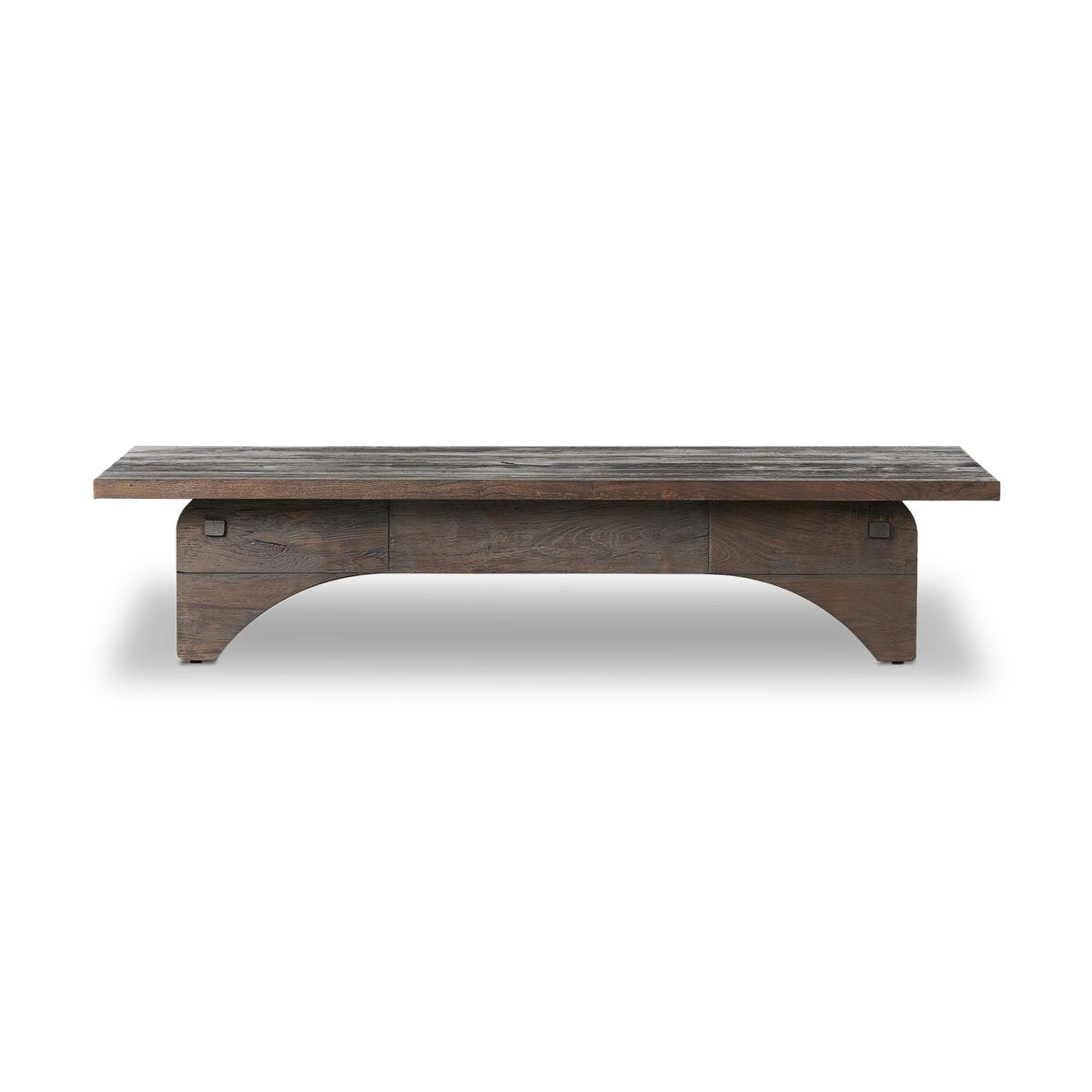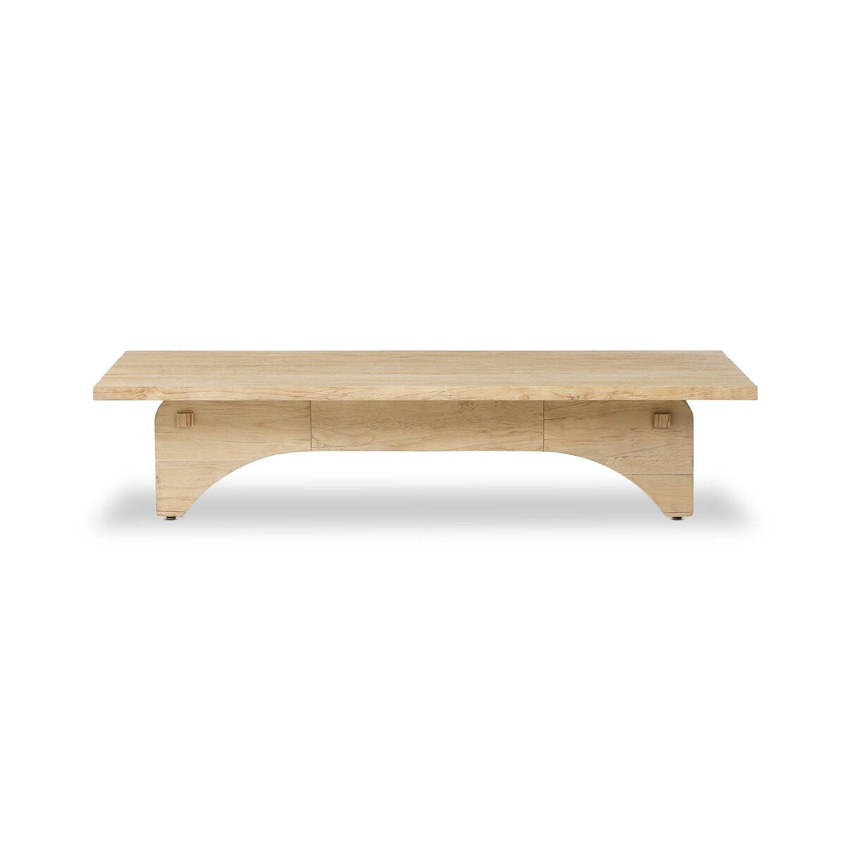 Overall Dimensions 70.00"w x 35.00"d x 15.00"hItem Number 239081-001Colors Bleached Alder, Bleached Alder SolidMaterials Resawn Alder Veneer, Solid AlderWeight 95.02 lbVolume 38.42 cu ftClearance from Floor 1 13.50"Distance between Legs (Front to Back) 1 19.00"Distance between Legs (Side to Side) 1 52.13"Leg/Base Depth 1 25.00"Leg/Base Height 1 13.50"Leg/Base Width 1 58.00"Overhang Width 1 6.00"Tabletop Thickness 1.50"Drawer Glide Type NoneDrawer Stop Material NoneFrame Construction Joinery Butt JointFrame Construction Joinery Edge Banded VeneerFrame Construction Joinery Mortise and TenonFunctionality NoneHas Leveler YesProtective Feet Leg LevelersShape Type RectangleSuite WinchesterWeight Capacity 100 lb