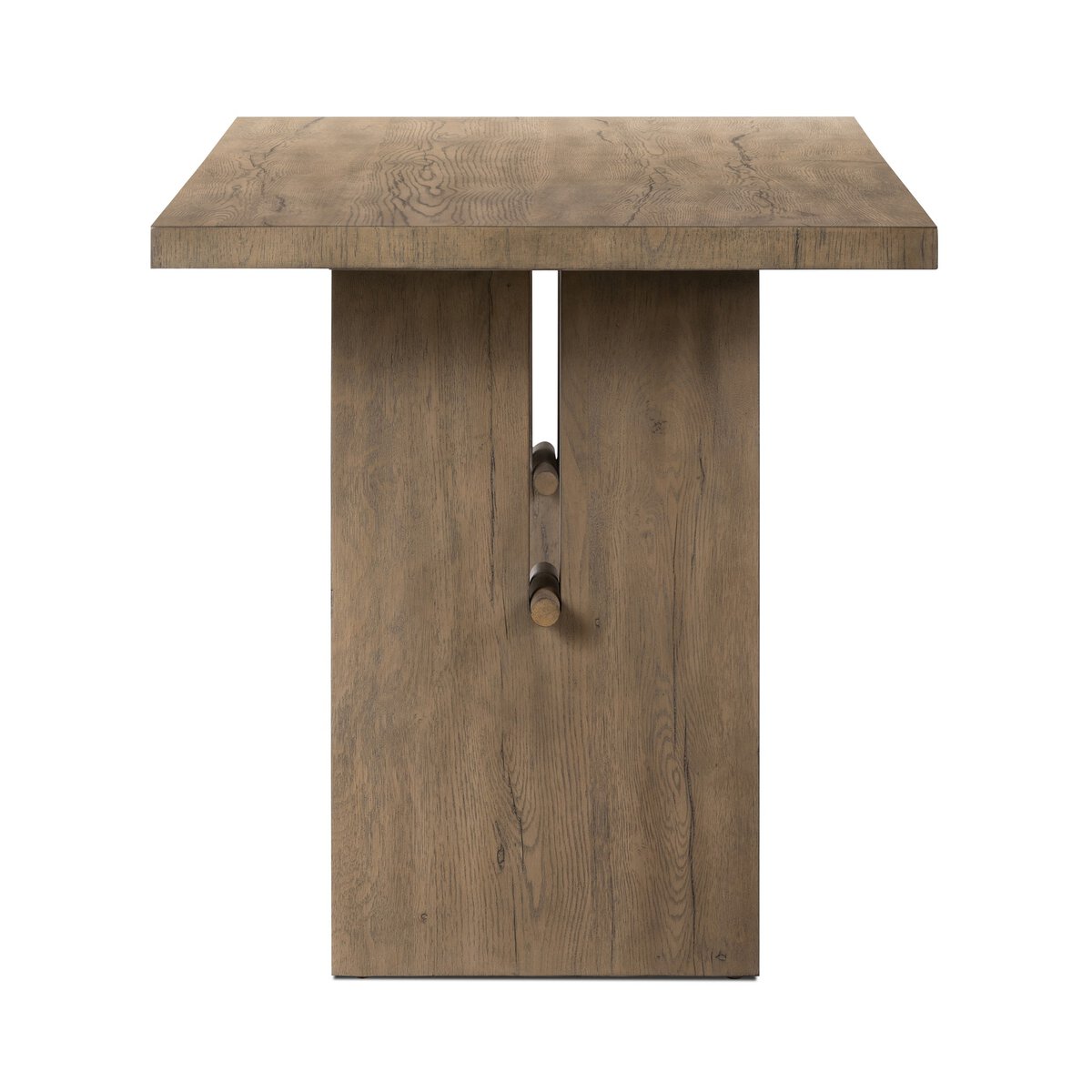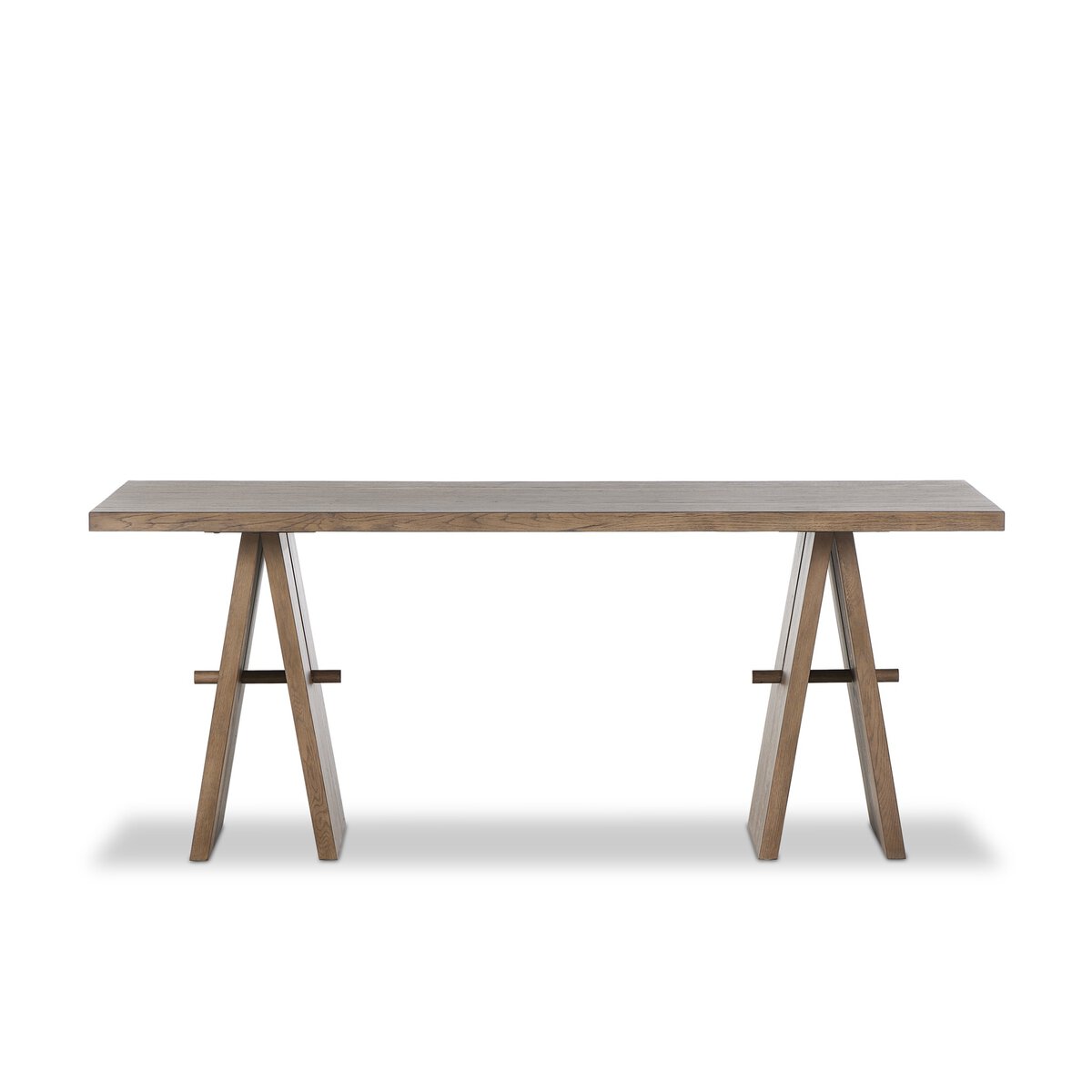 Overall Dimensions 75.00"w x 30.00"d x 30.00"hItem Number 241794-001Colors Rustic Grey VeneerMaterials Thick Oak Veneer, Solid OakWeight 151.02 lbVolume 22.74 cu ftClearance from Floor 1 28.43"Distance between Legs (Side to Side) 1 35.43"Opening for Seating Height 28.43"Tabletop Thickness 1.57"Weight Capacity 200 lb
