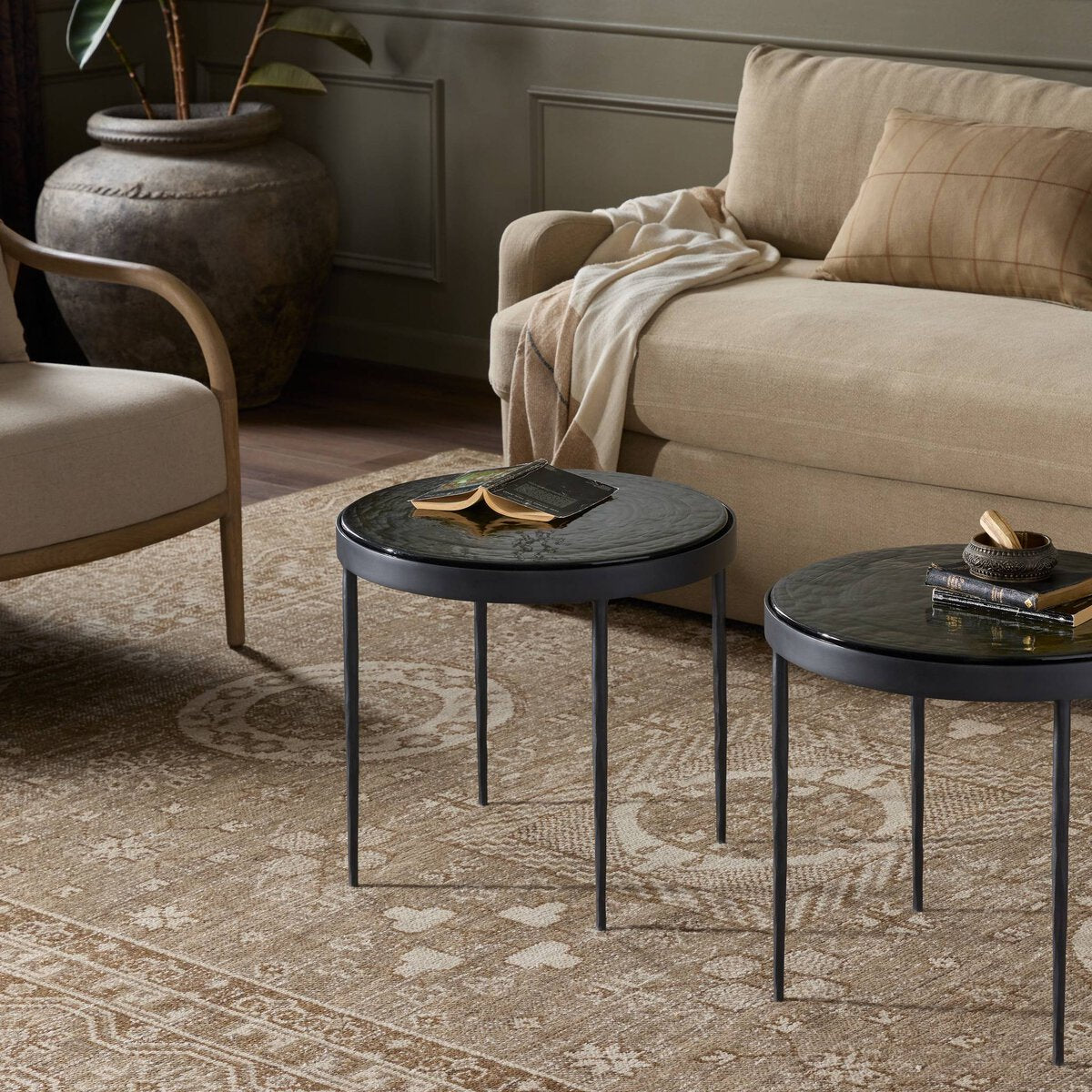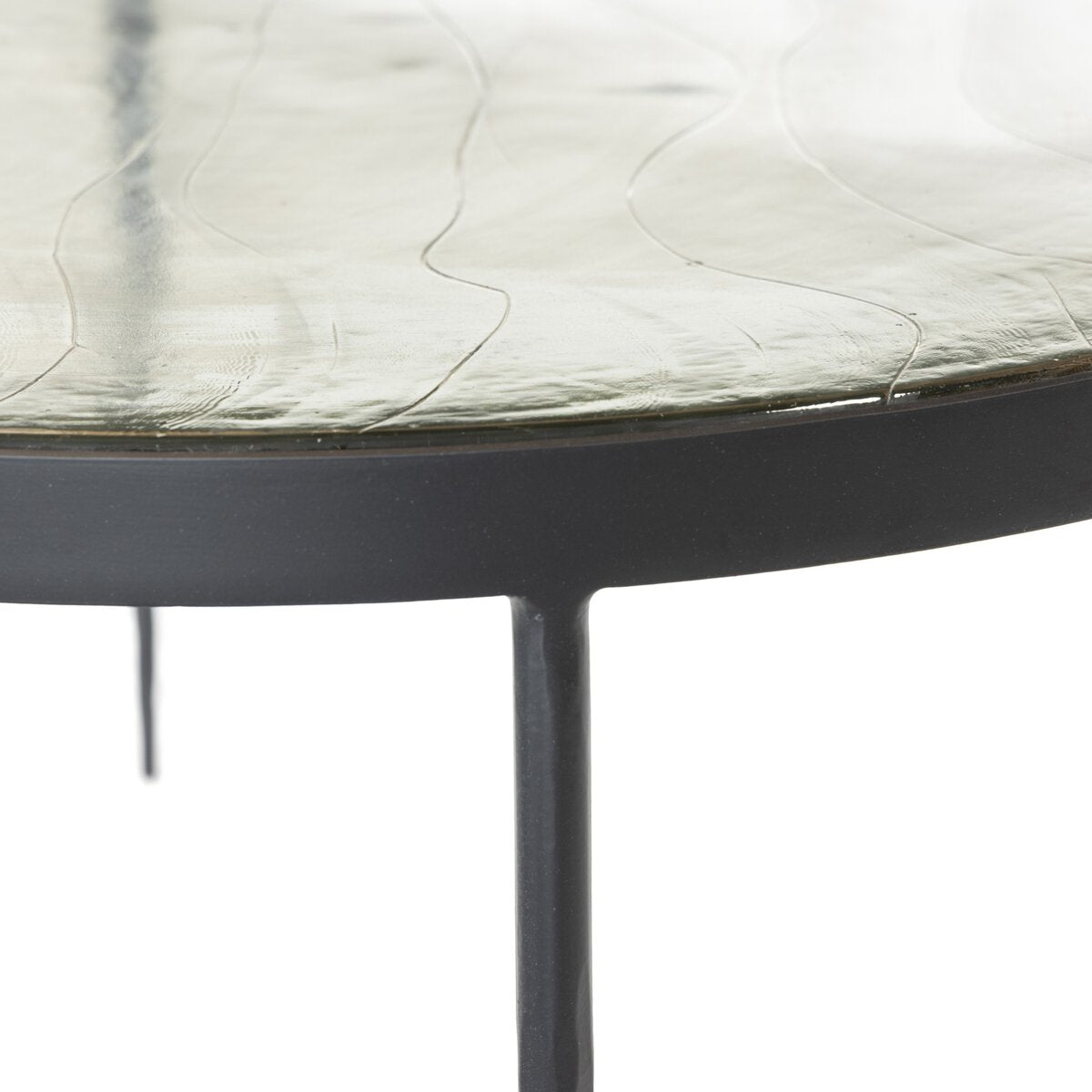 Overall Dimensions 20.50"w x 20.50"d x 18.25"hItem Number 246809-005Colors Clear Cast Glass, Iron Matte BlackMaterials Cast Glass, IronWeight 40.57 lbVolume 7.84 cu ftClearance from Floor 1 16.50"Distance between Legs (Front to Back) 1 13.37"Distance between Legs (Side to Side) 1 13.37"Large Table Depth 32.00"Large Table Height 16.25"Large Table Width 32.00"Leg/Base Depth 1 0.87"Leg/Base Height 1 16.50"Leg/Base Width 1 0.87"Medium Table Depth 20.50"Medium Table Height 18.25"Medium Table Width 20.50"Tabletop Thickness 1.50"Drawer Glide Type NoneDrawer Stop Material NoneFunctionality NoneShape Type RoundSuite YokoWeight Capacity 100 lb