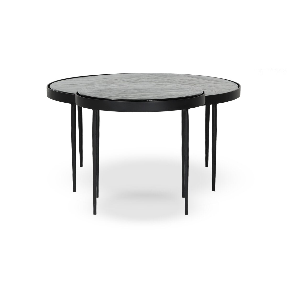 Overall Dimensions 32.00"w x 32.00"d x 18.25"hItem Number 241299-007Colors Clear Cast Glass, Iron Matte BlackMaterials Cast Glass, IronWeight 133.29 lbVolume 25.57 cu ftDrawer Glide Type NoneDrawer Stop Material NoneFunctionality NoneShape Type RoundSuite YokoWeight Capacity 100 lb