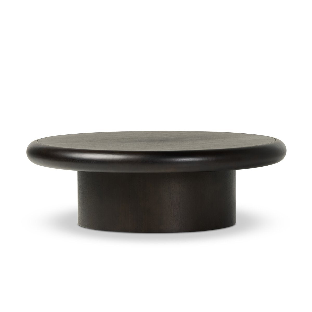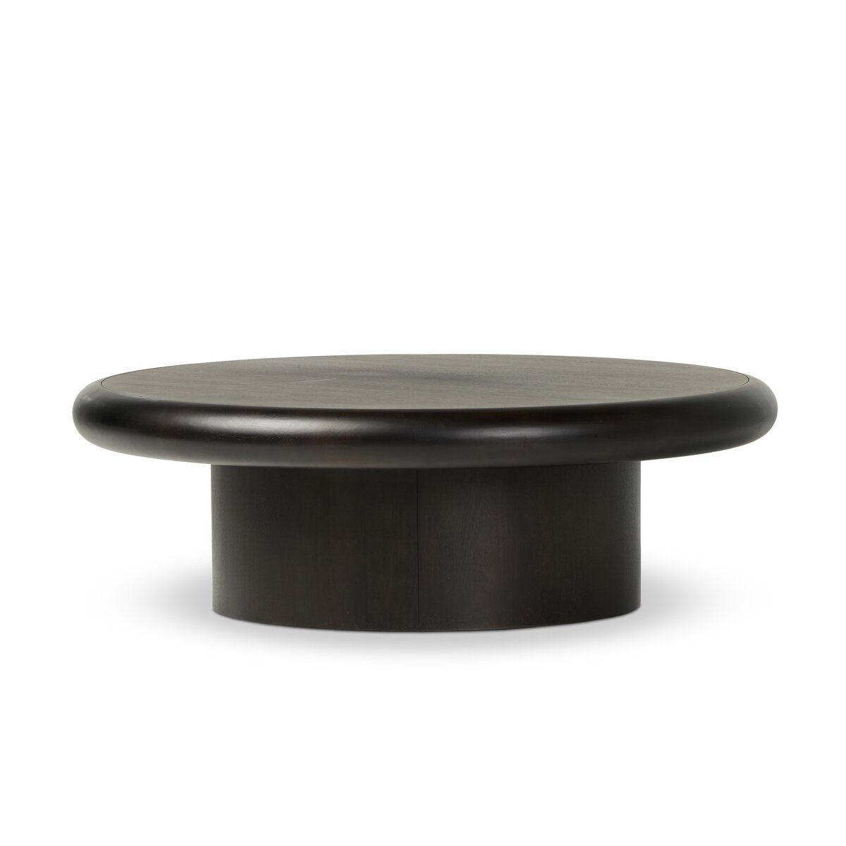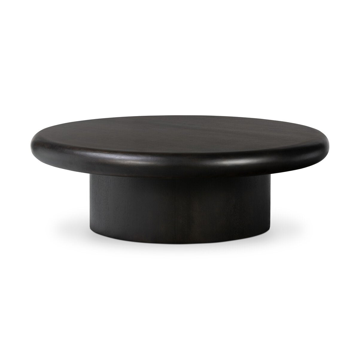 Turn up the volume. A pedestal-style base of solid burnished parawood supports a large, rounded tabletop with bullnose edging, for style and softness alike.