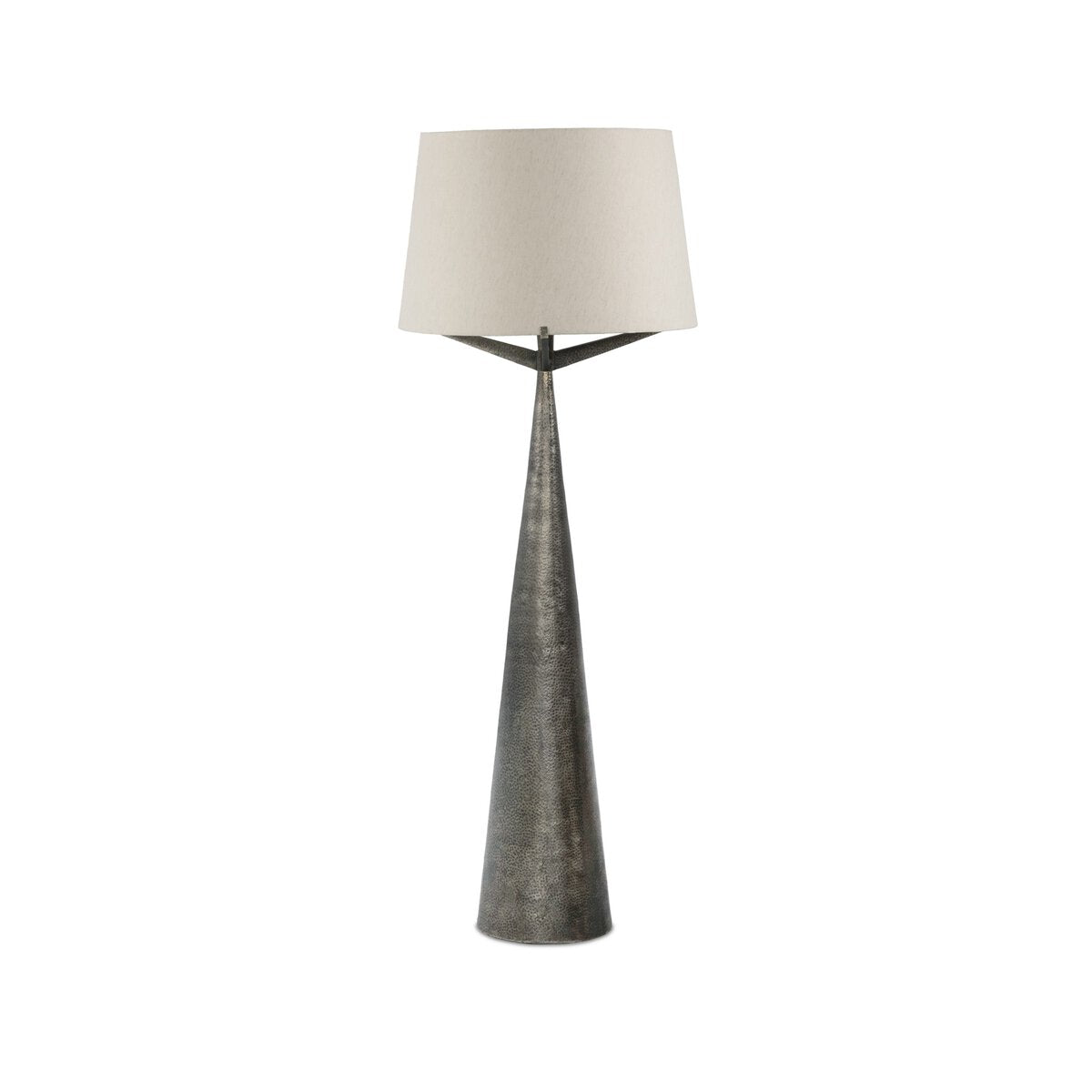 Overall Dimensions 26.00"w x 26.00"d x 70.00"hItem Number 235073-002Colors Hammered Smoked Nickel, Black CordMaterials Aluminum, ThermoplasticWeight 35.89 lbVolume 43.47 cu ftCord Length 120.00"Finial Size 1.00"Harp Size 13.00"Lamp Base Depth 12.00"Lamp Base Height 49.50"Lamp Base Width 12.00"Lamp Body Depth 12.00"Lamp Body Height 70.00"Lamp Body Width 12.00"Neck Diameter 1.25"Neck Height 4.88"Shade Bottom Diameter 26.00"Shade Height 1 16.50"Shade Top Diameter 1 21.50"